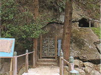 八犬伝の物語の中で、伏姫と八房が隠れ暮らしたとされる籠穴。 |